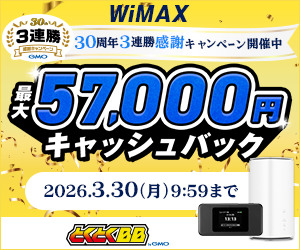 【期間限定】GMOとくとくBB WiMAX「30周年3連勝感謝キャンペーン」開催中!