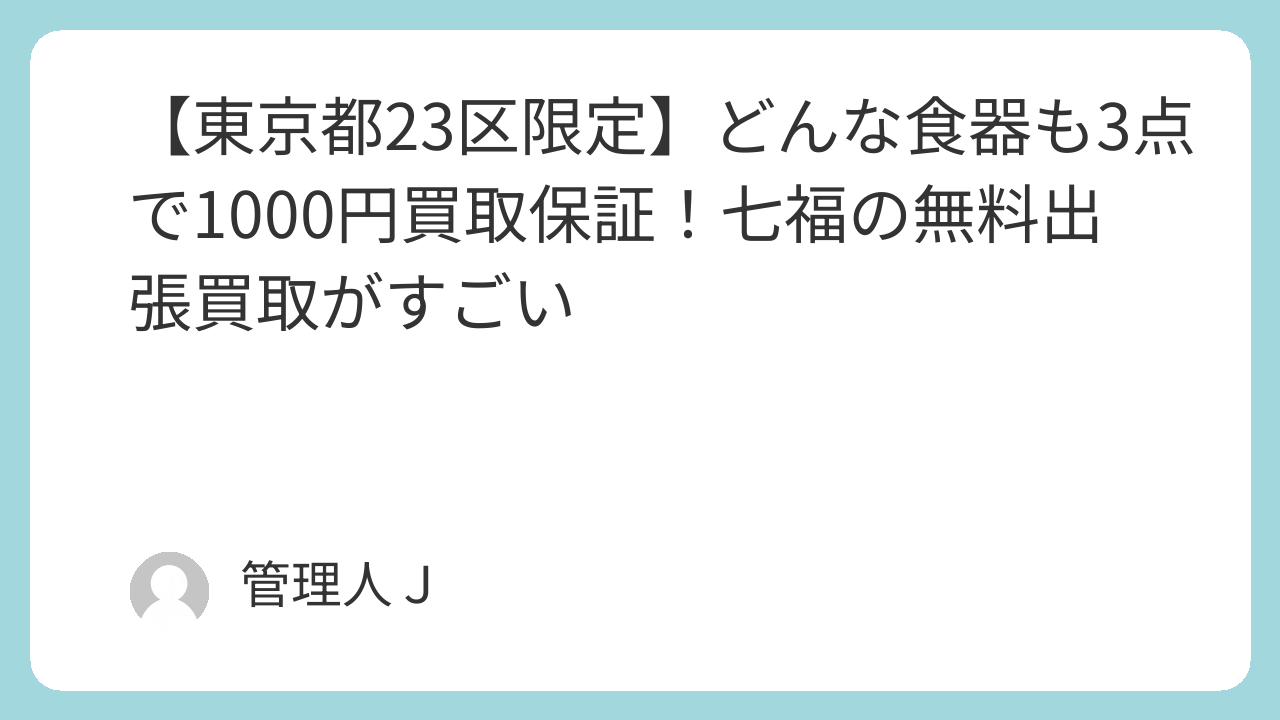 「使わなくなった食器、捨てるのはもったいないけど売れるのかな…?」 そんな方に朗報です!東京都23区限定で、どんな食器でも3点まとめて1000円買取保証というお得なサービスが登場しました。