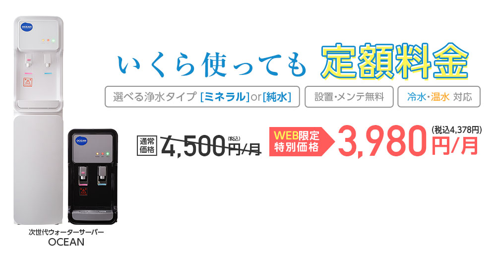 さらにOCEANは、月額定額制(レンタル料のみ)を採用しており、水の使用量がどれだけ増えても追加料金がかかりません。